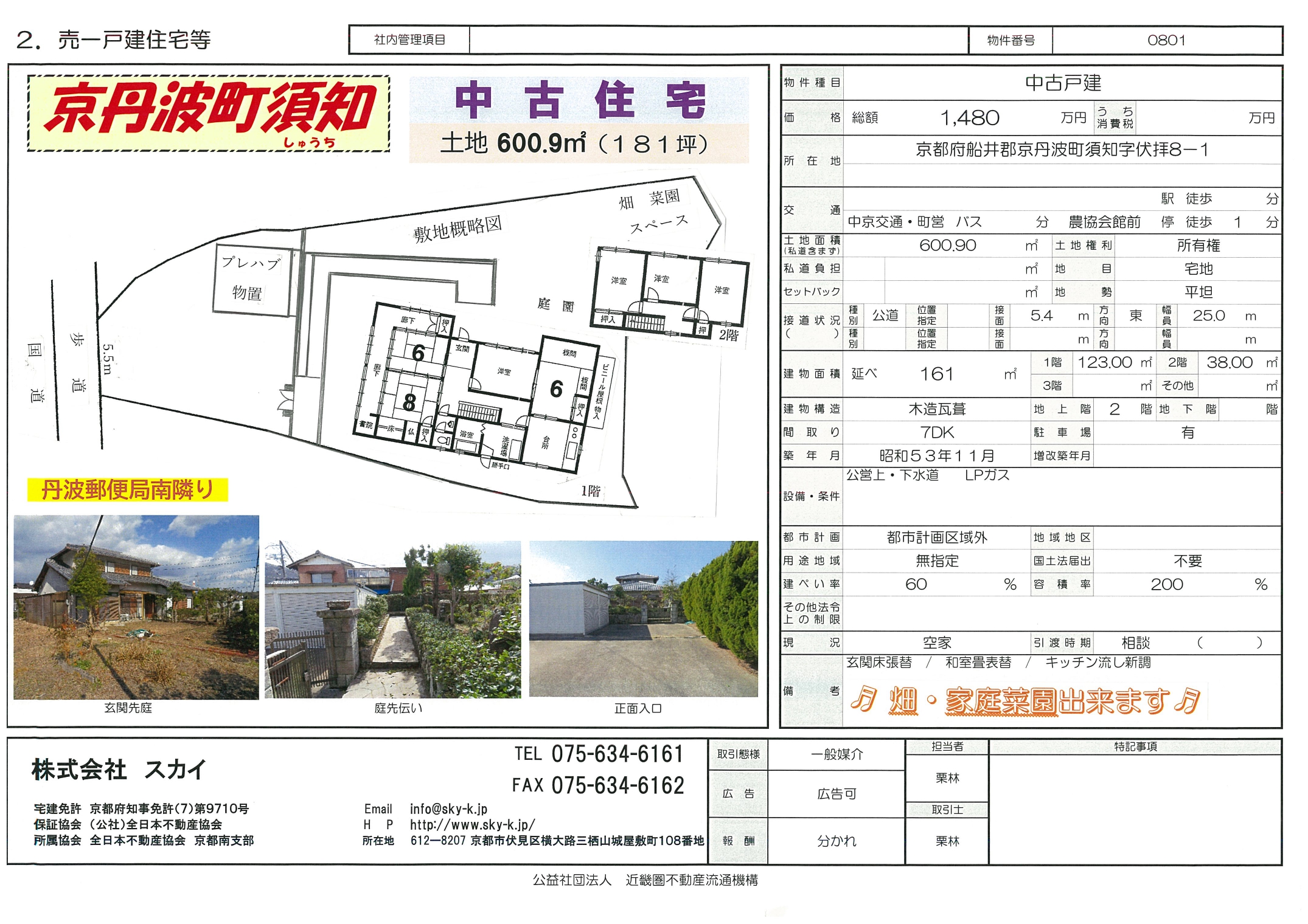 | 備考 | 玄関床張替 和室畳表替 キッチン流し新調 畑・家庭菜園できます | ||